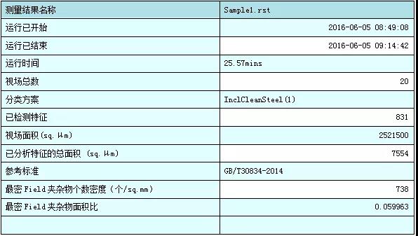 通过结果分析可以看出,采集夹杂物最小尺寸为1μm,在保证每个点至少有60000个计数的基础上,该区域共831个颗粒,扫描时间只需要25min,保证准确率的基础上效率非常高。通过OTS自带的标准库自动将夹杂物进行分类,结果显示大部分的析出相为NbC(N),平均尺寸大约为3微米,分布不是非常均匀,有的区域分布有一定的方向性,呈条状分布,因此为了提高强度和塑性,还需要进一步改善工艺,降低微米级NbC(N)的含量,同时使其更均匀的分布。